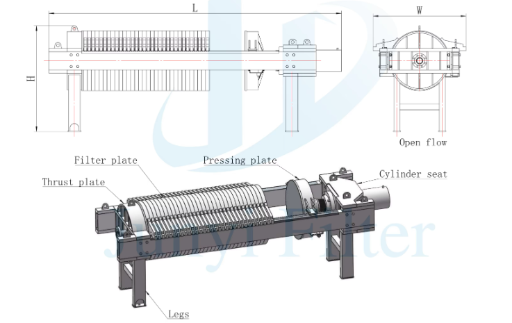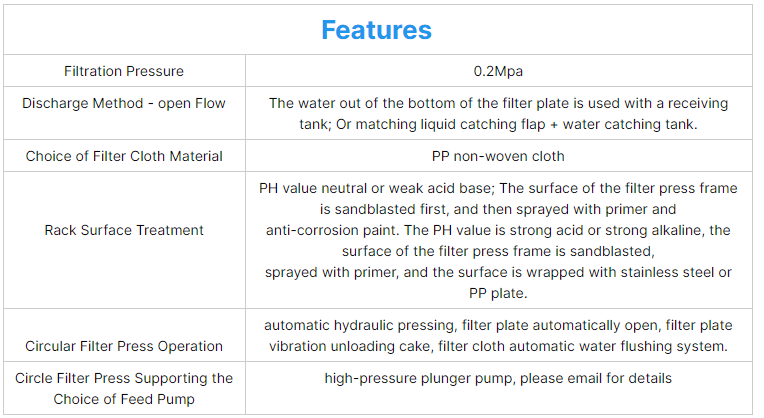 The filter plates and frames are made of nodular cast iron, high temperature resistance and have a long service life.