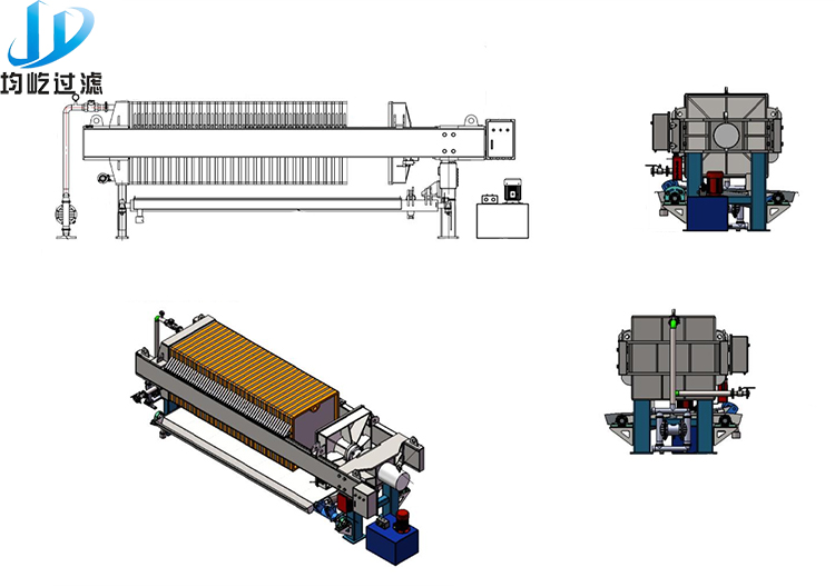 This customer purchased a stainless steel automatic hydraulic plate and frame filter press (BAY50/800 model) at the beginning of 2025. The entire machine is equipped with a 304SS stainless steel frame, a single-cylinder hydraulic pressing mechanism, and a manual plate pulling mechanism. The filtration unit is made of 316L material, including one head plate, one tail plate, 27 middle plates (25mm thick), and 28 filter frames (50mm thick). The accompanying filter cloth and filter paper are suitable for a siliceous earth and activated carbon auxiliary filtration system. The feeding system uses a sanitary 316L pneumatic diaphragm pump (QBW3-50), with a Teflon diaphragm. The control system is a Siemens S7-200 PLC, combined with Schneider electrical appliances and a touch screen, with a protection level of IP54. The auxiliary equipment includes 316L liquid-contact flip plates (hydraulic drive), 316L clamp-type pipes and valves, and 304SS electric contact pressure gauges.